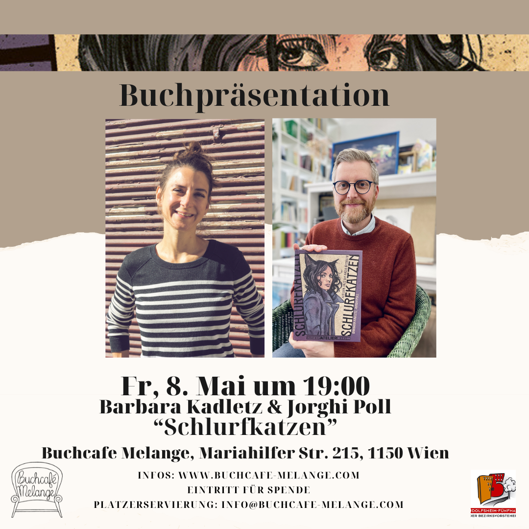 Wir laden herzlich zur Buchpräsentation der Graphic Novel „Schlurfkatzen“ von Barbara Kadletz, illustriert von Jorghi Poll, ein.